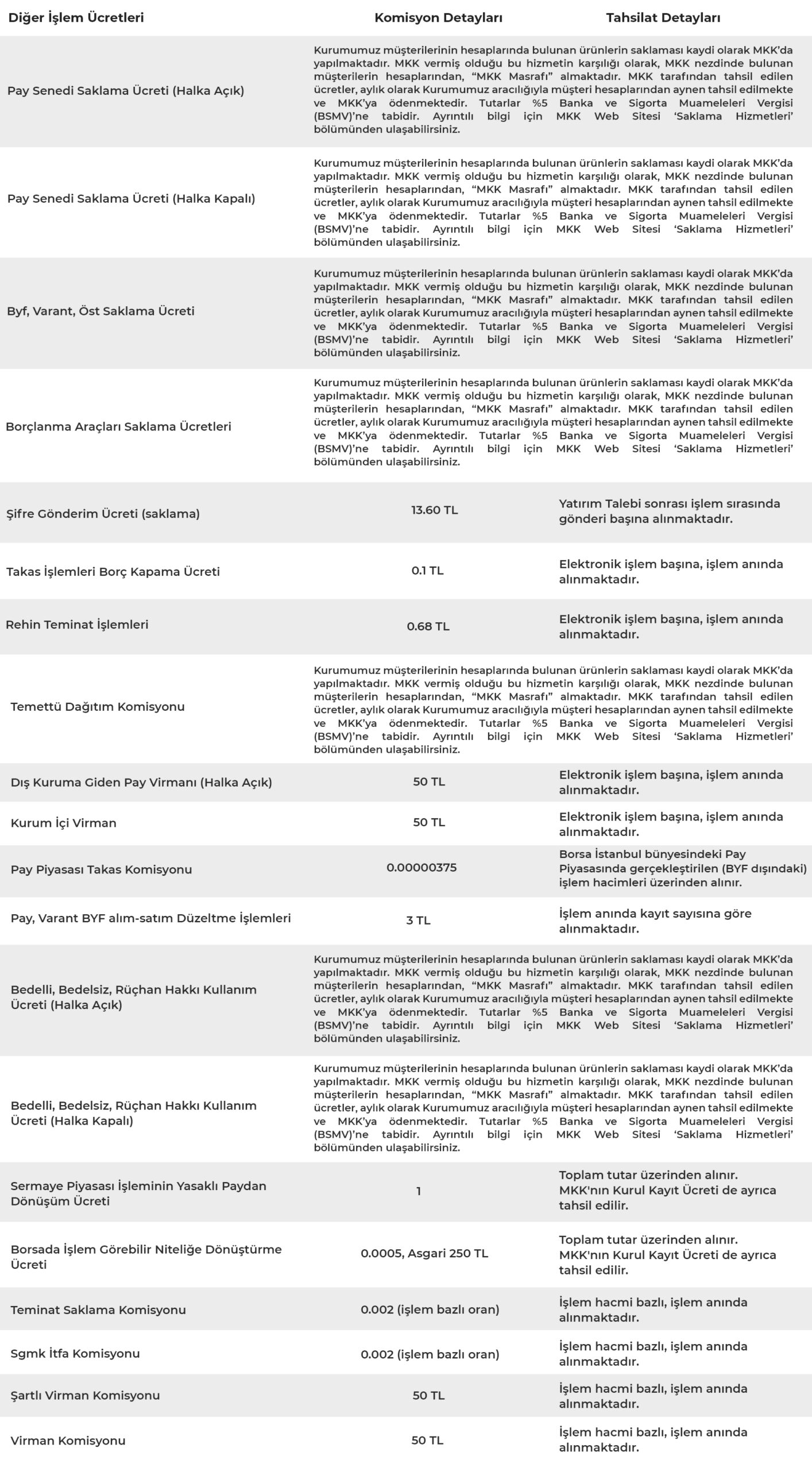 Takas ve Saklama İşlem Komisyonları