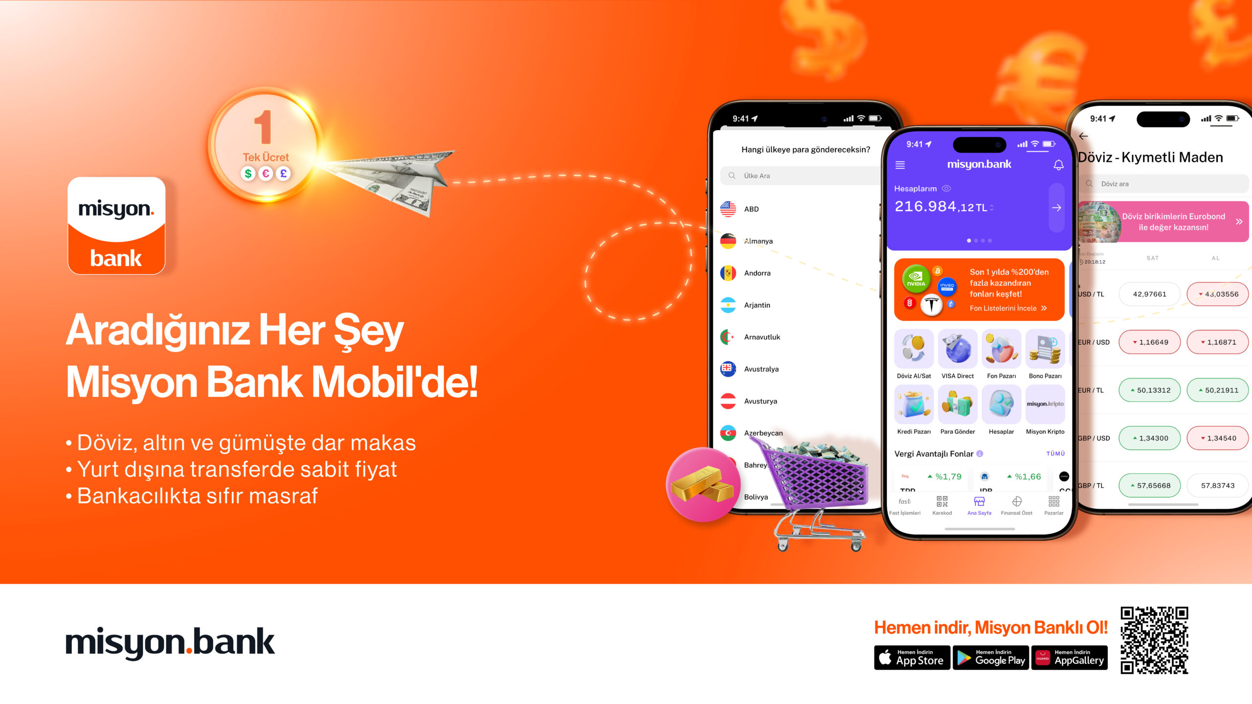 ETF, Yatırım Fonu, GYF ve GSYF dahil olmak üzere 6.500’den fazla fon Misyon Bank Mobil’de.